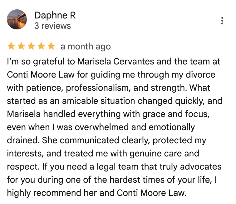 If you’re facing a divorce or any family law issue in Orlando, the experienced South Orange divorce attorneys at Conti Moore Law Divorce Lawyers, PLLC are here to guide you. Contact us today to schedule a free consultation. We’re committed to helping you and your family take the next step with confidence.